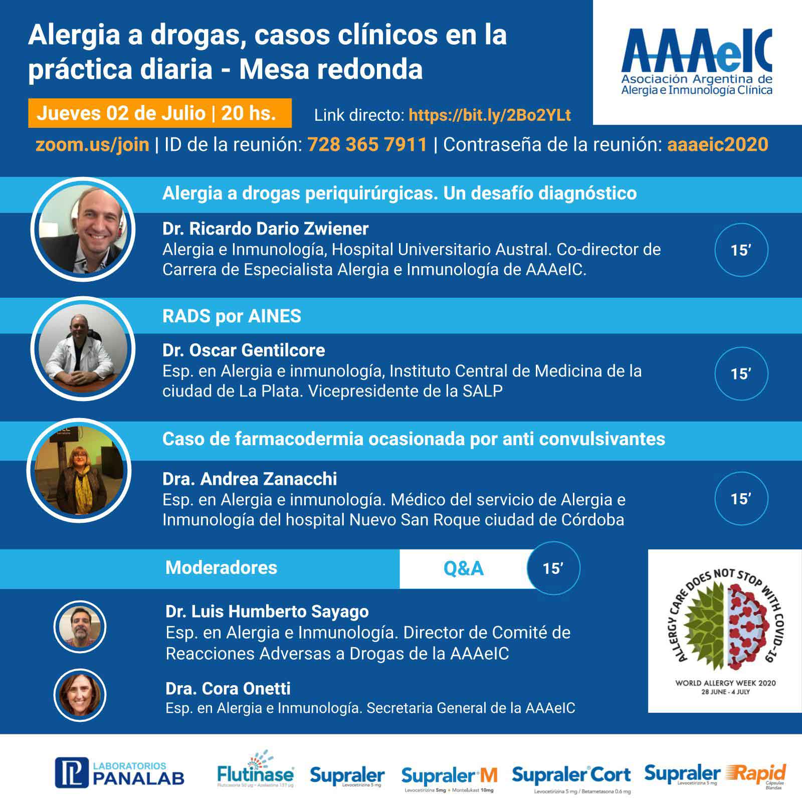 ALERGIA A DROGAS, CASOS CLÍNICOS EN LA PRÁCTICA DIARIA - MESA REDONDA | 02 de Julio de 2020 a las 20 hs.