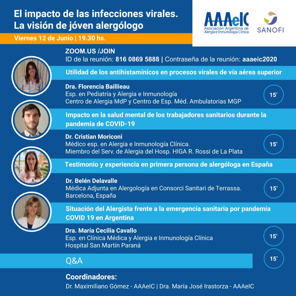 EL IMPACTO DE LAS INFECCIONES VIRALES. LA VISIÓN DE JOVEN ALERGÓLOGO | Viernes 12 de junio a las 19.30 hs.