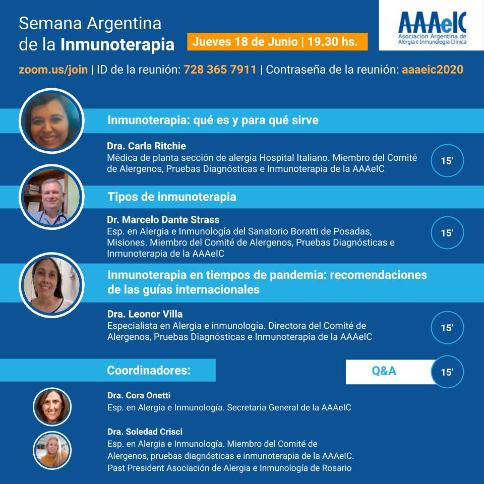 SEMANA DE LA INMUNOTERAPIA | Jueves 18 de Junio A LAS 19.30 hs.
